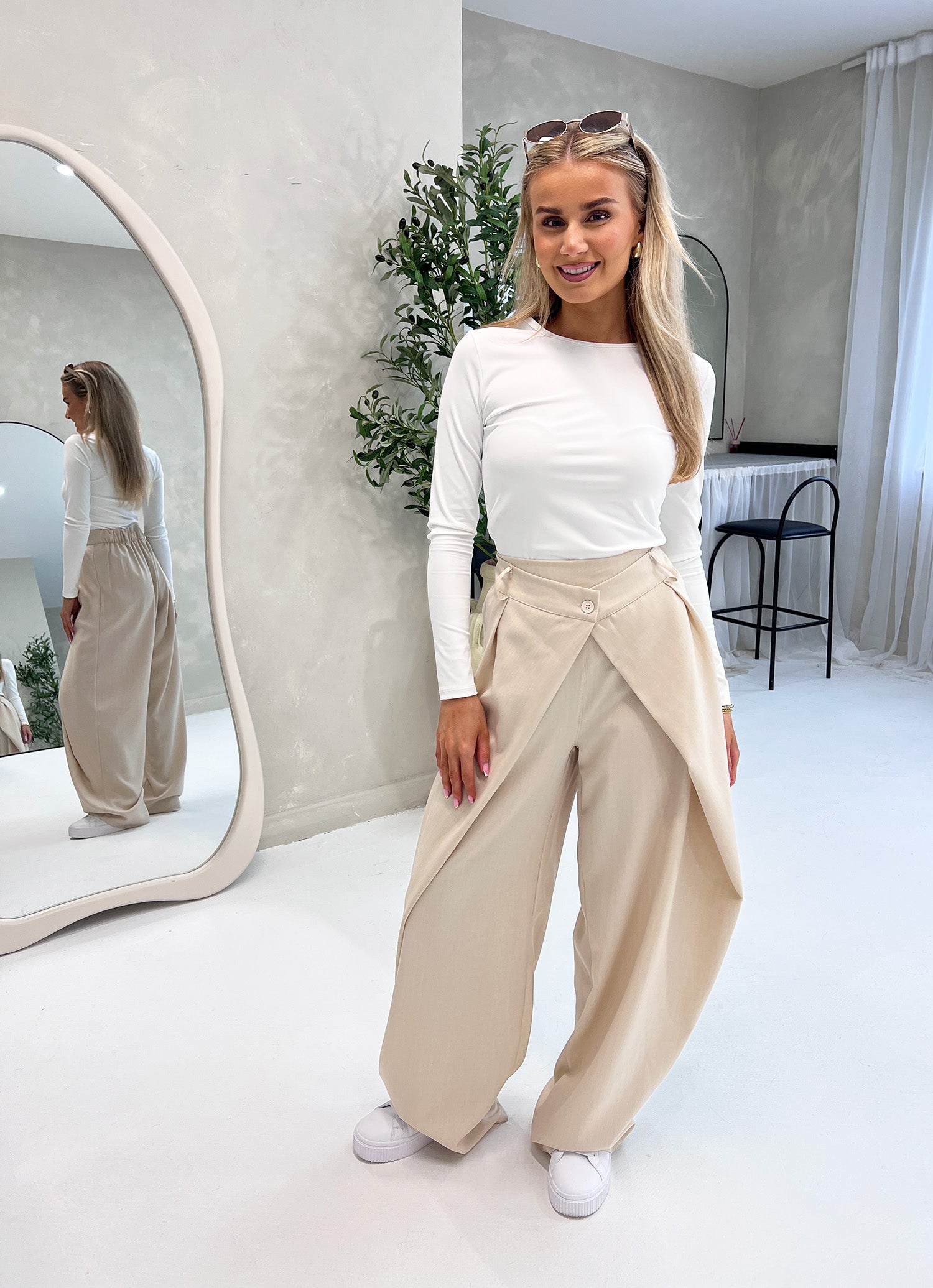 SOFT LIGHWEIGHT DOUBLE WAISTBAND TROUSERS IN BLUSH