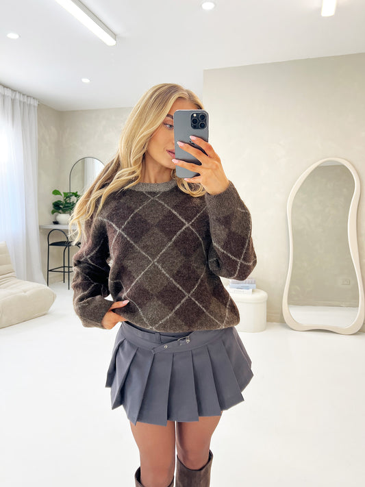 • ARGYLE CREW NECK KNIT JUMPER IN BROWN - Angeleene