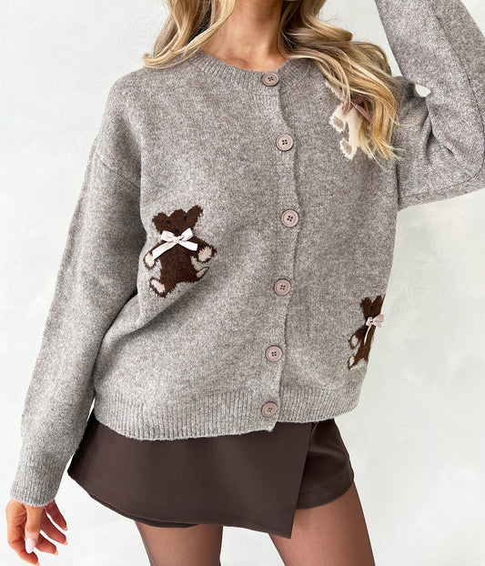 • TEDDY BEAR PRINT DETAIL BUTTON UP CARDIGAN - Angeleene
