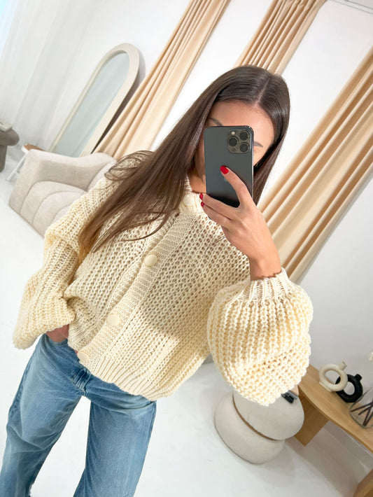 CABLE KNIT BUTTON UP CARDIGAN IN CREAM