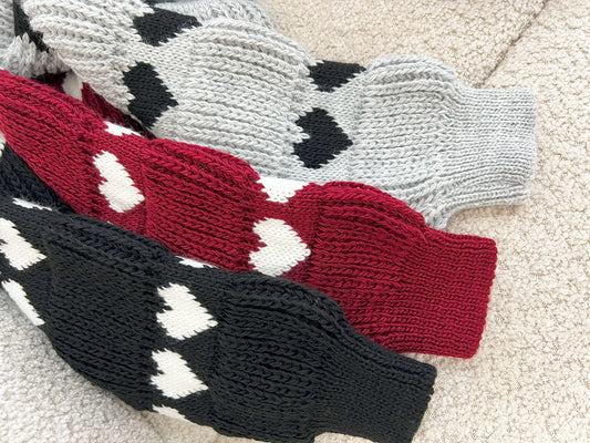 KNITTED JUMPER HEART PATTERN IN BURGUNDY