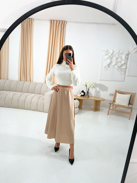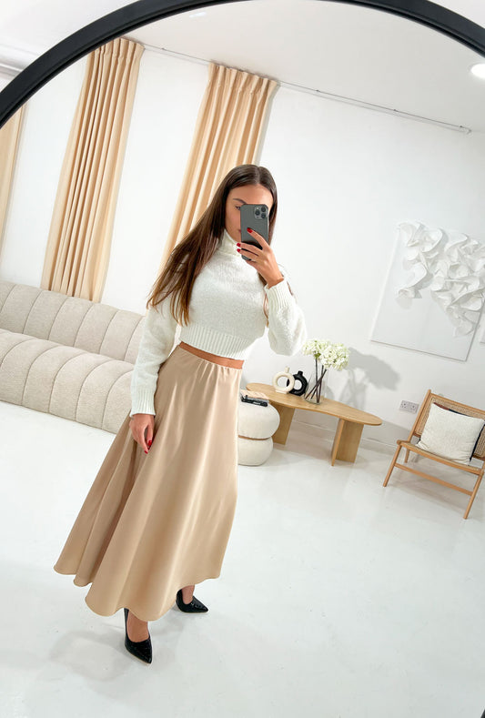 MIDAXI CHAMPAGNE SATIN SKIRT