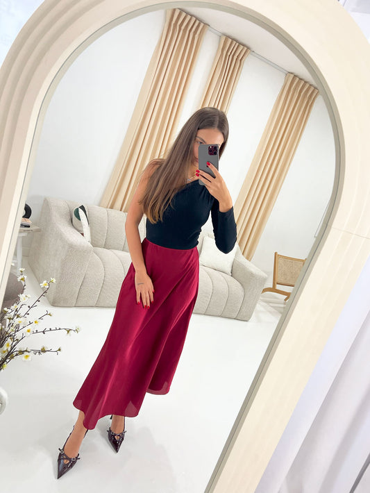 MIDAXI SATIN SKIRT IN BURGUNDY